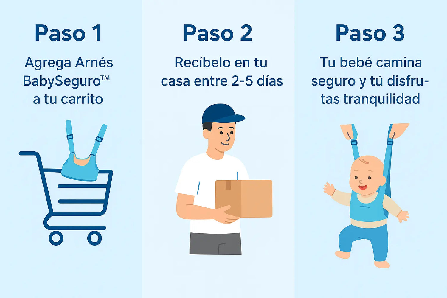Tu bebé merece caminar seguro y sin riesgos. No esperes a que una caída fuerte te dé un susto. Arnés BabySeguro™ te acompaña en esta etapa hermosa pero retadora.